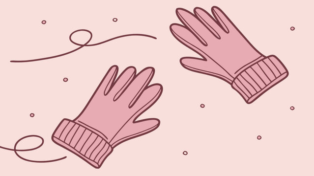 Illustration of a pair of pink gloves with ribbed cuffs floating on a pink background with dots and swirls