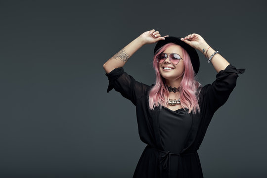 Cool young woman with pink hair