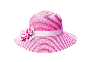 Colorful woman pink hat with fabric flower patterns isolated on white background with clipping path