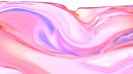 Realistic 3D animation of abstract morphing iridescent pink liquid form with a shimmering surface rendered in UHD, white background.