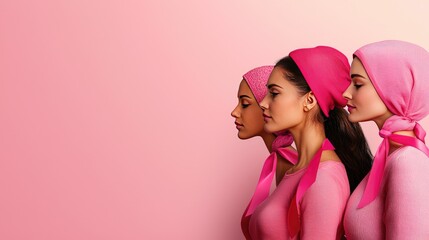 Pink ribbon symbolizing breast cancer awareness on pink background