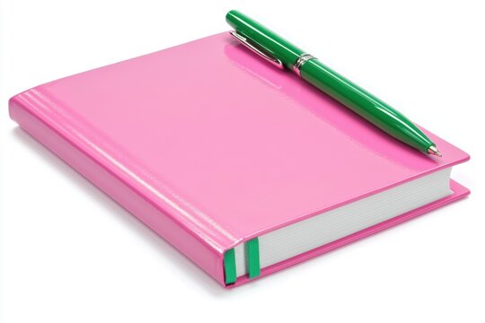 A soft, creamy pink planner lies isolated on a bright white background, school, design