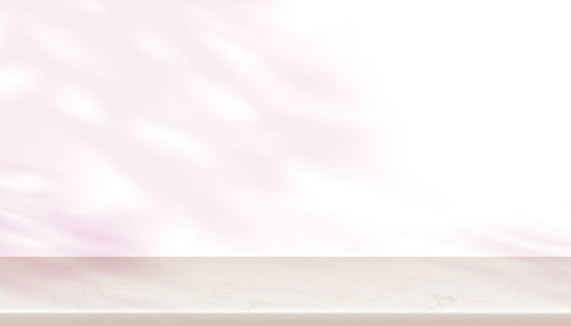 Realistic pink background for product presentation. Vector illustration of light peach color empty space with satin texture. Fashion studio interior design. Cosmetics, beauty services banner template