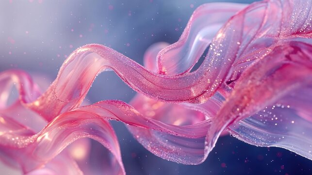 Abstract Fluid Motion with Pink Ribbons - Dynamic and Elegant Art