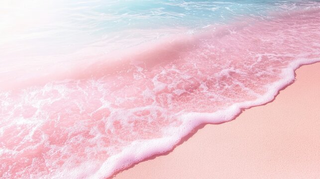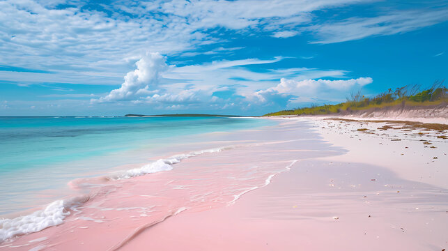 Stunning pink sands beach with blue waves and fine pink sands in summer