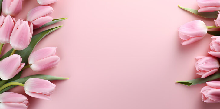 Tulips flowers pink template for congratulation.Woman's day, 8 march, Easter, Mother's day, anniversary