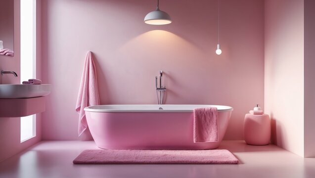 Interior design of a stylish and modern cafe with a pink theme and marble accents