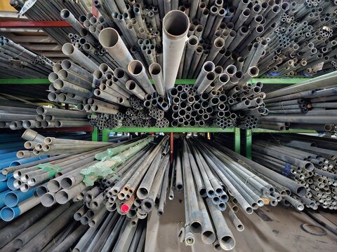 Metal Plumbing Pipe Fitting on Blue Background for Construction and DIY Projects