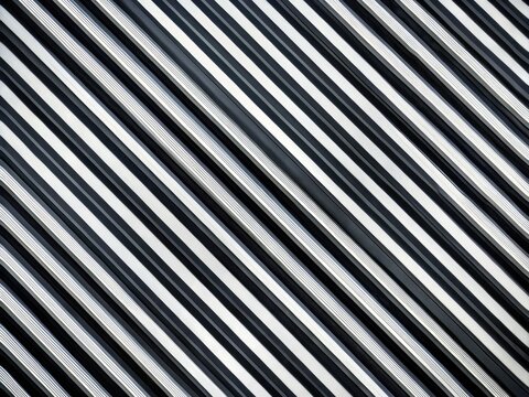 Close-up view on black plastic corrugated drain pipe ribs texture.