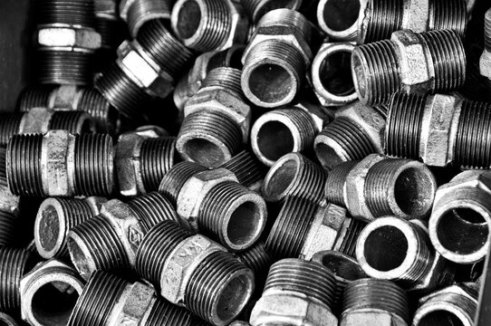 A close-up view of a metal pipeline with glowing lights, showcasing the intricate details of industrial machinery
