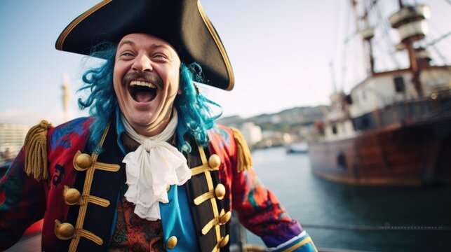 Happy man dressed like a Pirate laughing on Talk Like a Pirate Day