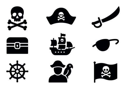 Pirate, adventure solid icon set. nautical, treasure hunt icons collection