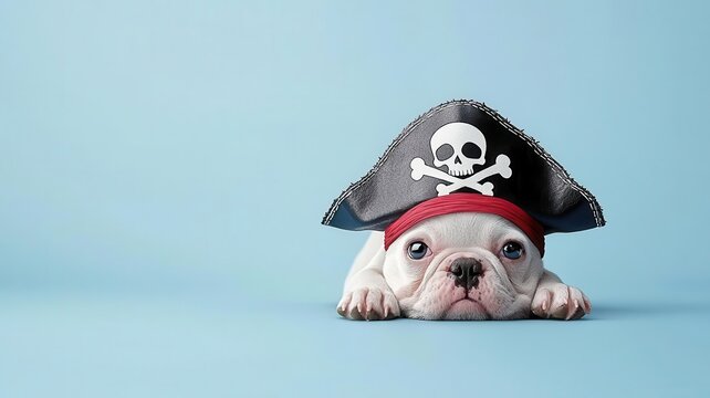 Snarky baby dog in a pirate hat, playful sneer, 3D illustration
