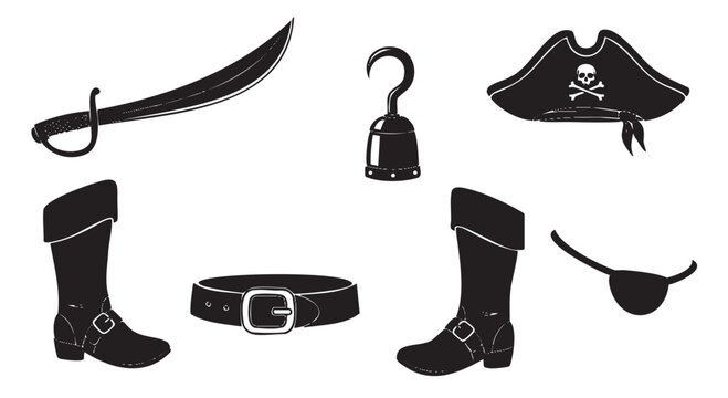 studio portrait of a young black boy dressed as a pirate with a pirate hat, pirate captain costume, for a historical party, disguised, on a grey background, happy child, smiling, pirate themed event