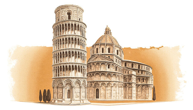 Pisa tower  paint by ink technique isolated on whie. AI generated illustration