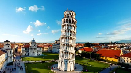 Aerial footage drone view of Pisa Tower in Italy// no video editing