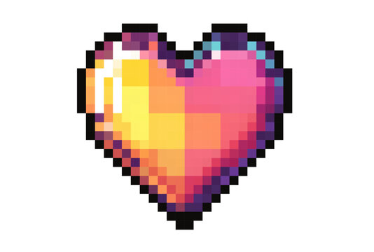 Digital pixel heart in vibrant pink and blue gradient isolated on transparent background