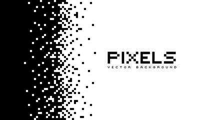 Illustration disintegrates or dissolves on the pixel pattern. Vector concept of technology. Place for text. Monochrome style. Isolated background