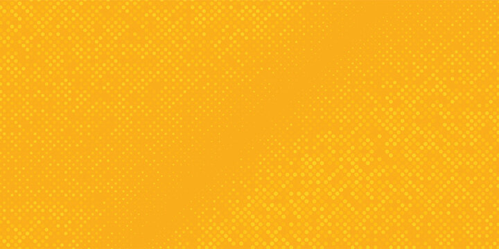 abstract Yellow halftone pattern. Retro comic gradient background. Bright orange pixelated dotted texture overlay. Cartoon pop art faded gradient pattern.