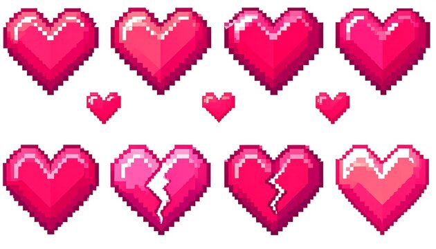 Pixelated hearts in various states