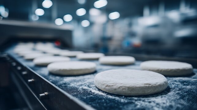 Parbake - known as the basis for Roman pizza. Baking the base for Roman pizza in a conveyor oven. Bakery bakes parbake