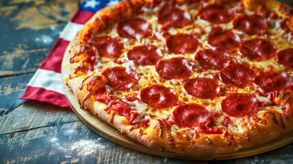 Pepperoni pizza slice and football with bokeh lights in cozy atmosphere