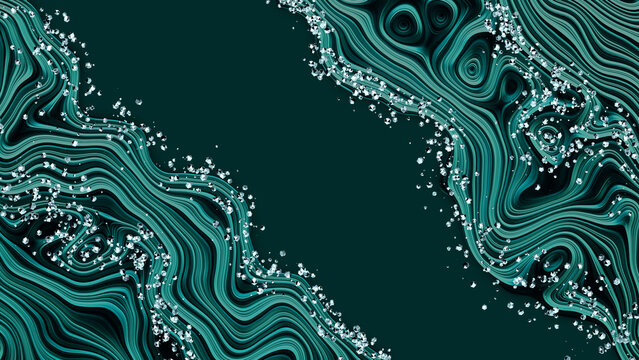 Dark and green fake stone texture with placers of small crystals. Space for extra objects.