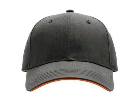 Stylish gray baseball cap with orange underbill, Isolated On Transparent Background