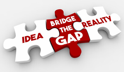 Idea to Reality Bridge the Gap Plan Execution Puzzle Pieces 3d Illustration