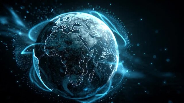 Futuristic Earth Globe with Blue Energy Aura and Stars.