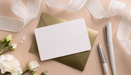 Wedding planner business card mock up displayed with elegant lace, floral arrangements, and stationery, perfect for event planning inspiration