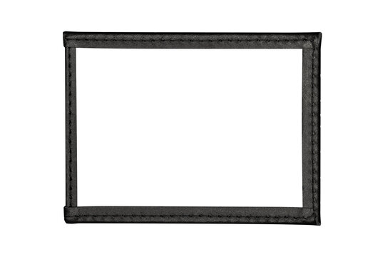 Black ID card holder leather cover frame with empty space isolated on transparent background.