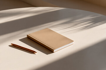 stationery design, sleek goal-setting journal with pen, bright morning sun, and inspiring january vibe