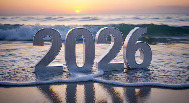 2026 New Year on the beach at sunset - travel goals and future vision