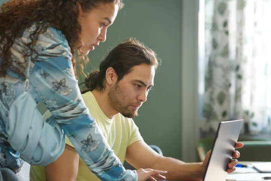 African american couple enhancing skills through online cooking class