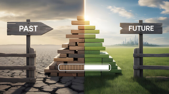 Navigate from the past to a bright future with progress, growth and a positive journey, visualize success and moving forward on your business goals