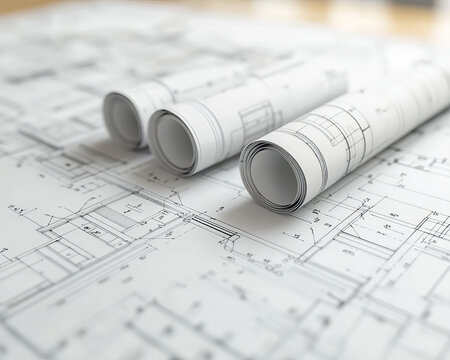 Architecture design: blueprint plan - illustration of a plan modern residential building / technology, industry, business concept illustration: real estate, building, construction, architecture