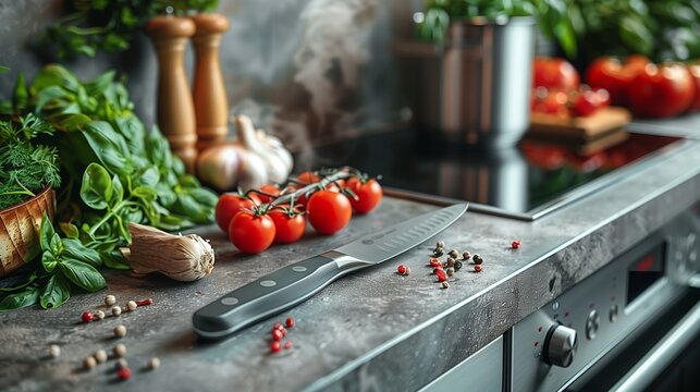 Abundance of Fresh Vegetables on Modern Kitchen Counter