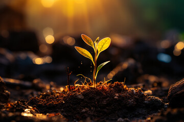 Vegetable plant on blurred background. Young plants in nursery plastic tray, Nursery vegetable farm. close up of seedling growing in black plastic tray.