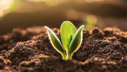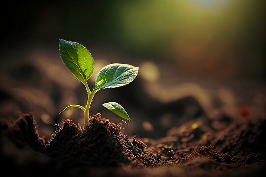 pequeno broto de planta crescendo em solo fertil e umido