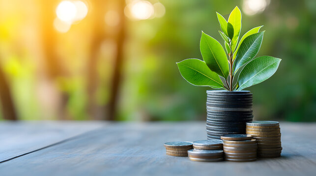 Growing Wealth: The Symbolism of a Small Tree Sprouting from a Stack of Coins