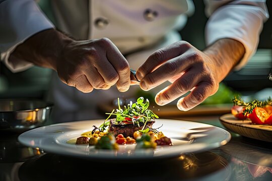 A chef preparing a delicious dish in a fine restaurant.