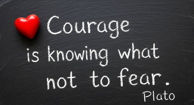 Inspirational Quote on a Chalkboard with Red Heart Symbolizing Courage and Wisdom
