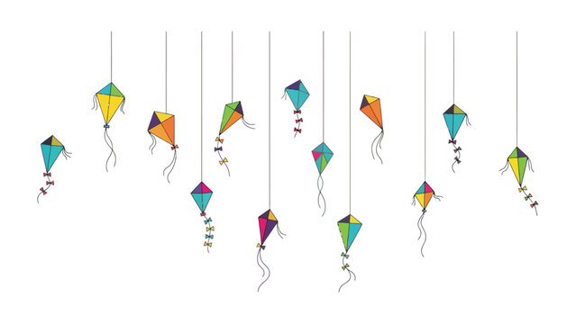 Kites in the Sky: Colorful kites of various designs gracefully suspended in mid-air, a visual symphony of vibrant hues and playful energy, embodying a sense of freedom and childlike wonder.