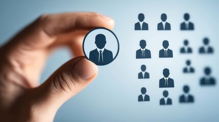 Hand choose person with HR human resources icons for personal leader training skill or leadership and business team creative thinking and organization management teamwork or team player challenge
