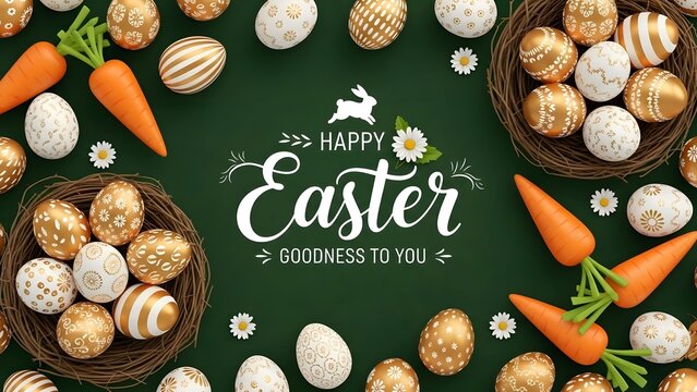 Happy easter sunday celebration with golden wrapped eggs