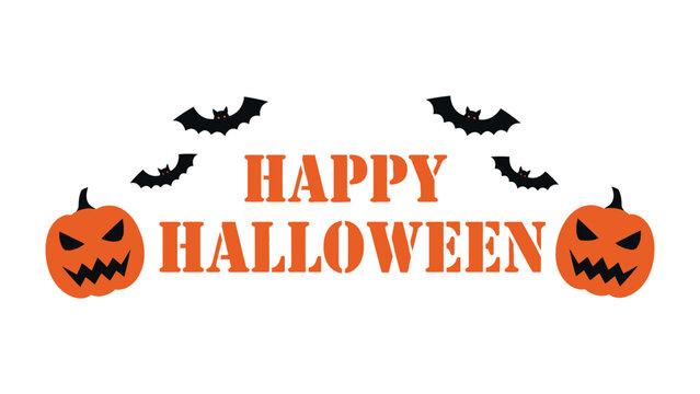 Spooky Halloween Banner: A chilling banner, adorned with grinning pumpkins and spooky bats, proclaims Happy Halloween, a playful visual celebrating the festive season.