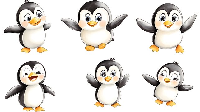 A delightful variety of cartoon penguins in playful poses, dressed in their iconic tuxedo-like feathers. Perfect for arctic-themed designs.