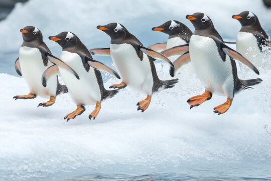 Playful Penguins Sliding on Ice Representing Joy and Playfulness