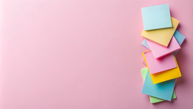 Pastel Paradise: A vibrant stack of colorful sticky notes on a soft pink background, perfect for adding a touch of playful organization to your projects.